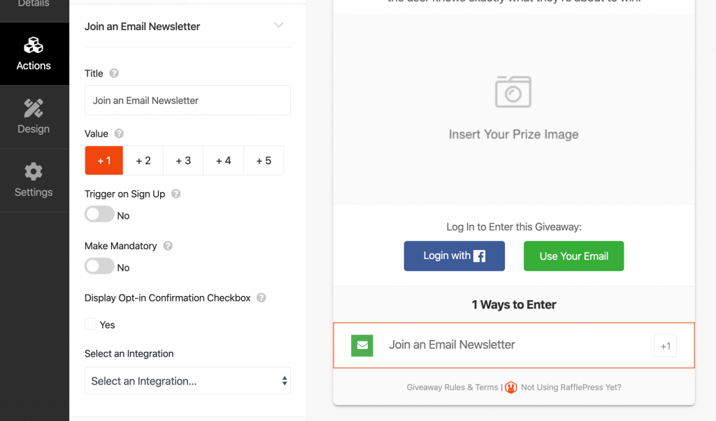 You can add other actions from the Actions tab if you want participants to follow you on social media or visit a specific page.