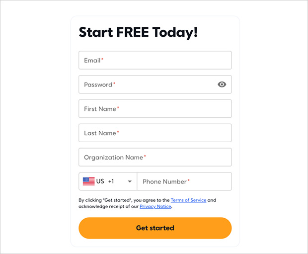 Choosing that template automatically loads a ready-made sign-up form with the required fields.